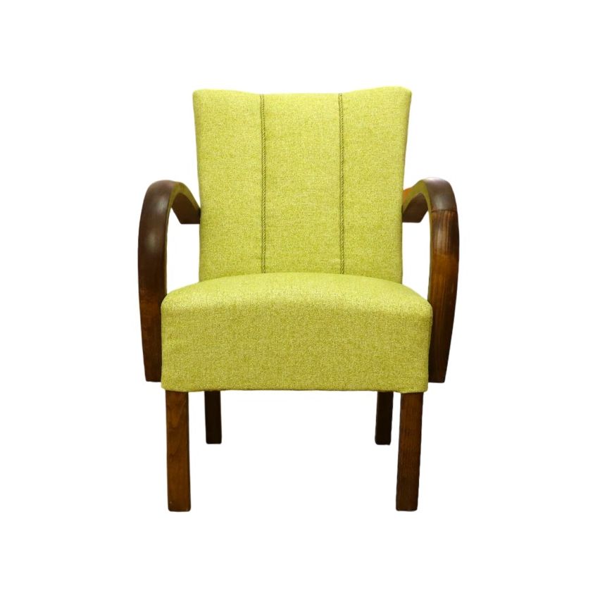 Dieser charmante Cocktailsessel aus den 1950er Jahren vereint Retro-Eleganz mit modernem Komfort. Er verfügt über stabile Armlehnen aus Holz und eine weiche Stoffpolsterung, die sowohl Stil als auch Gemütlichkeit bietet. Das zeitlose Design macht ihn zur perfekten Ergänzung für Wohnzimmer, Lounge oder Leseecke. Ein echtes Vintage-Stück, liebevoll restauriert, das seinen ursprünglichen Charakter bewahrt und gleichzeitig modernen Sitzkomfort bietet.