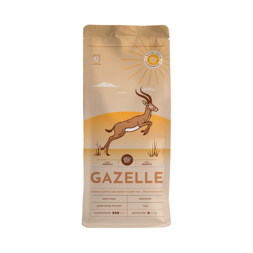 Ein Single Origin zum Verlieben. Grazil, wie eine GAZELLE springt er aus Afrika in Dein Leben und verändert es nachhaltig. Viel Liebe aus diesem herrlichen Land beim Anbau vereint mit dem zarten Umgang mit dem Rohkaffee in unserer lokalen Rösterei bei Wien werden Dich in ihren Bann ziehen.