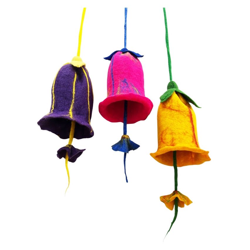 hochwertigem Filz, der in zarten und kräftigen Nuancen gefärbt ist. Jede Blüte