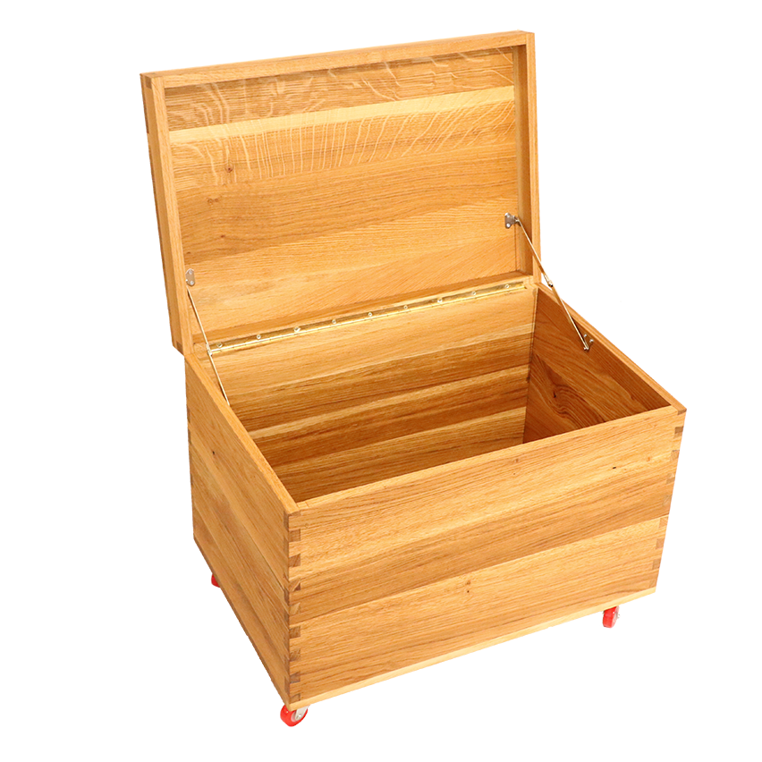 Edle Truhe aus Eiche, zur Aufbewahrung und oder als Beistelltisch - ganz praktisch auf Rollen.