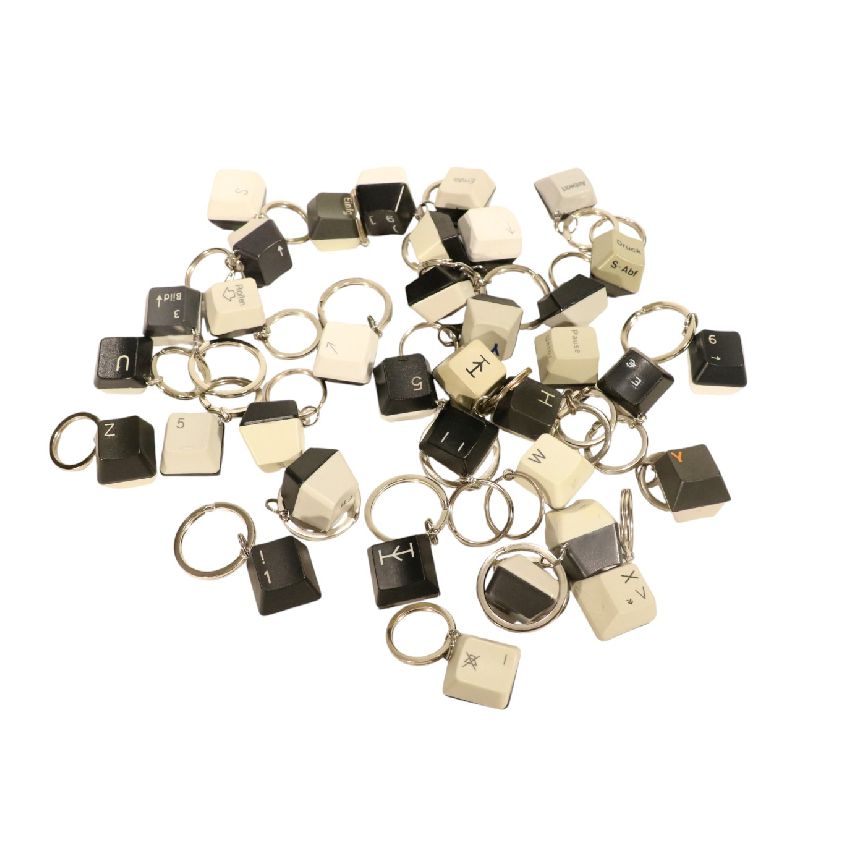 Schlüsselanhänger aus Tastaturtasten von nicht mehr funktionstüchtigen Tastaturen.