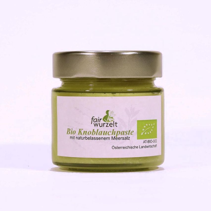 Knoblauchpaste wurde hergestellt von unseren Partner:innen bei Fairwurzelt