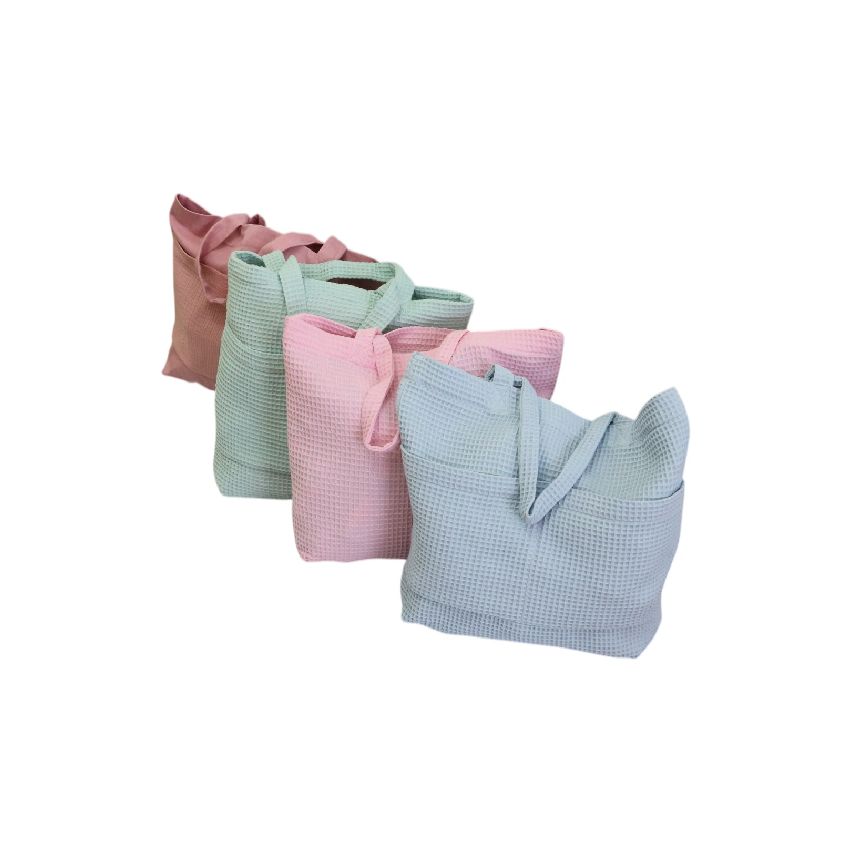 MAMAS Shopper – Waffelstoff-Edition in Rosa, Mint und Blau.