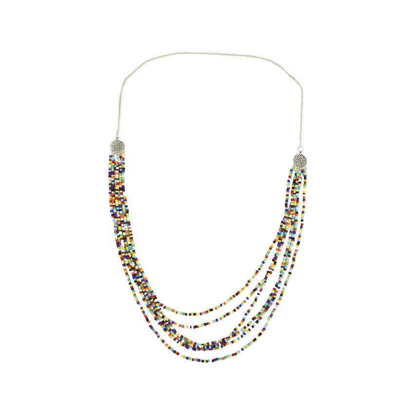 Ein echter Blickfang: Diese farbenfrohe, mehrreihige Perlenkette ist ein Unikat aus sorgfältiger Handarbeit. Die Kombination aus verschiedenen Glasperlen in leuchtenden Tönen sorgt für ein harmonisches Farbspiel, das jedes Outfit aufwertet – ob lässig, boho oder elegant. Durch die mehrreihige Anordnung entsteht ein voluminöser, aber dennoch leichter Look, der deiner Persönlichkeit Ausdruck verleiht.