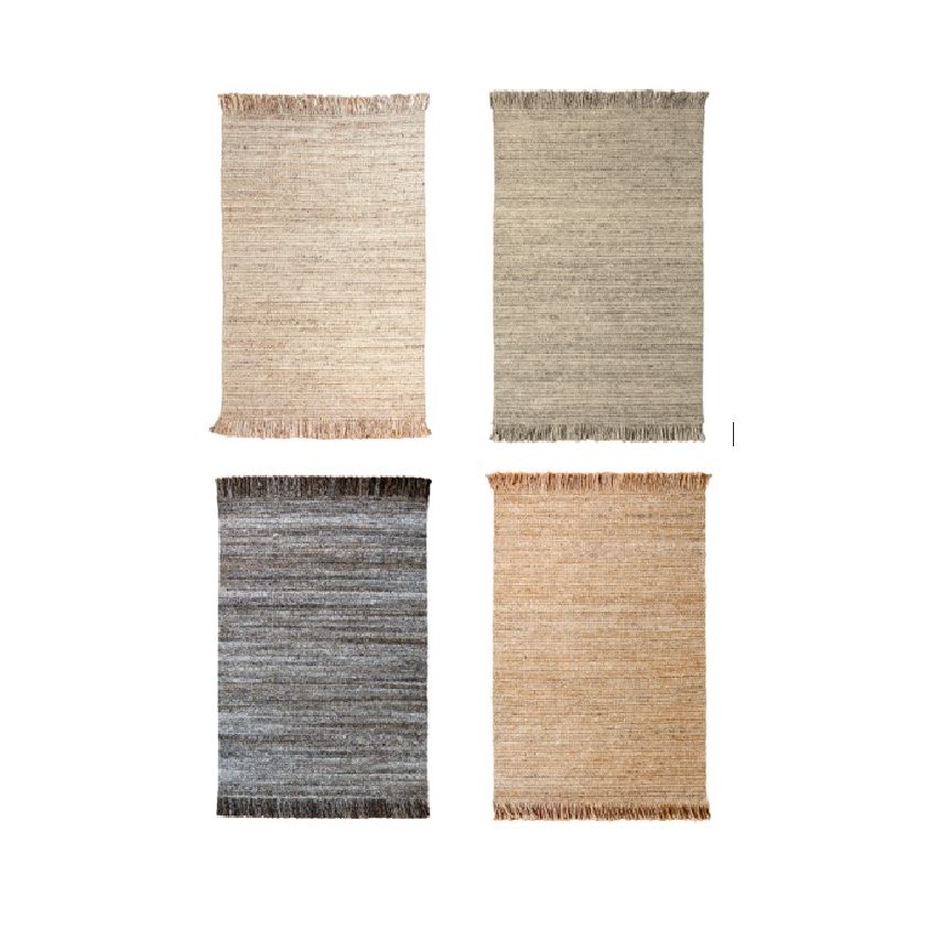 Teppich DALEO 4. Handversponnene Faser aus recycelten PET-Flaschen, von Hand gefertigt, ca. 3 kg/m², mit Fransen.