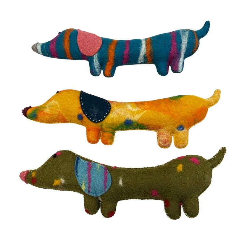 Dieses liebevolle Stofftier aus hochwertigem Wollfilz in der Form eines Dackels ist ein charmantes Kuscheltier für jedes Alter. Mit seiner idealen Größe lässt es sich wunderbar in die Hand nehmen oder als Dekoration verwenden. Das handgefertigte Design und die weichen, natürlichen Materialien machen es zu einem besonderen Geschenk oder Sammlerstück.
